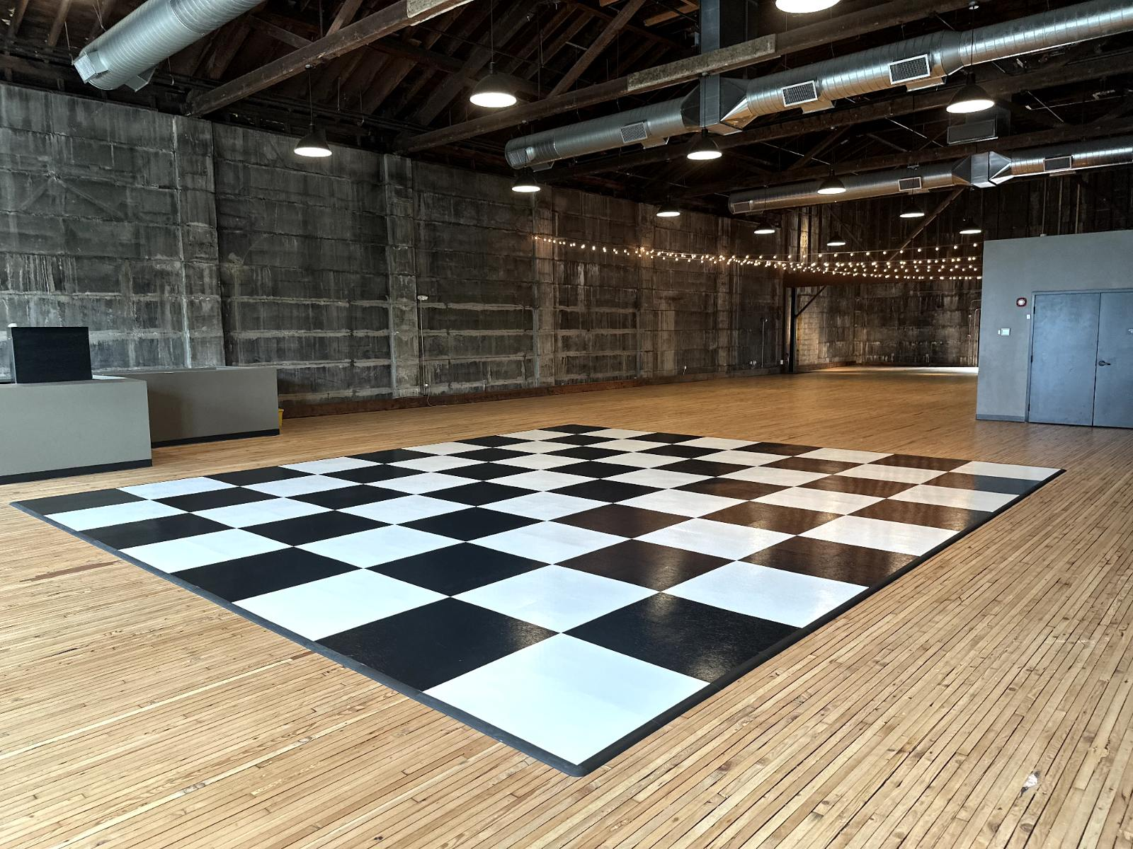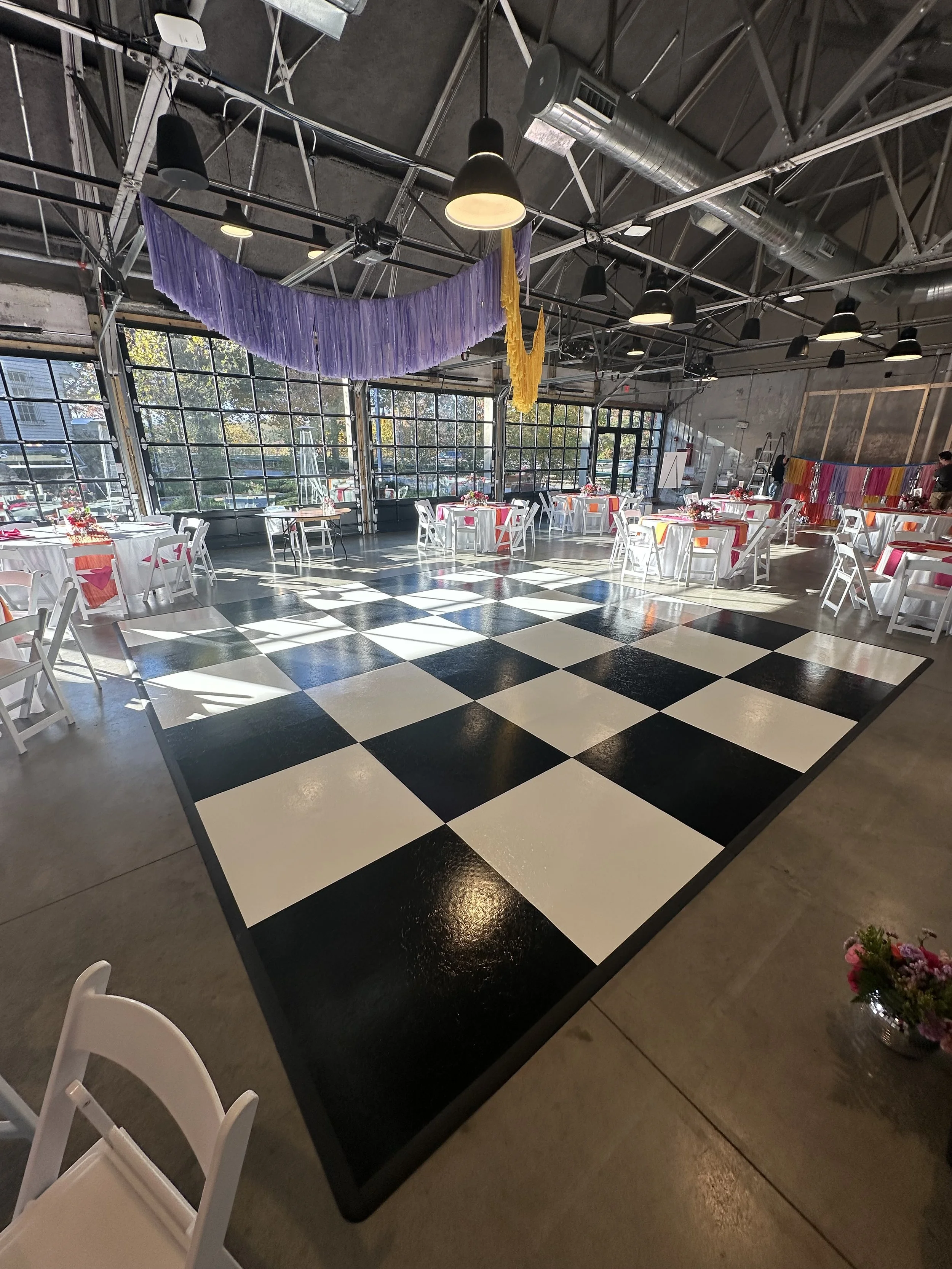 Our classic black and white checkered dance floor is designed to be the aesthetic centerpiece of your event, offering far more than just a surface to dance on.