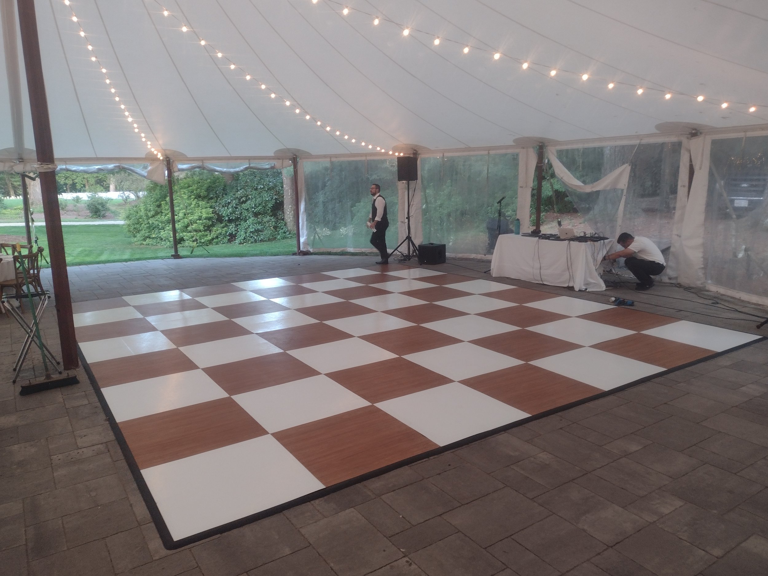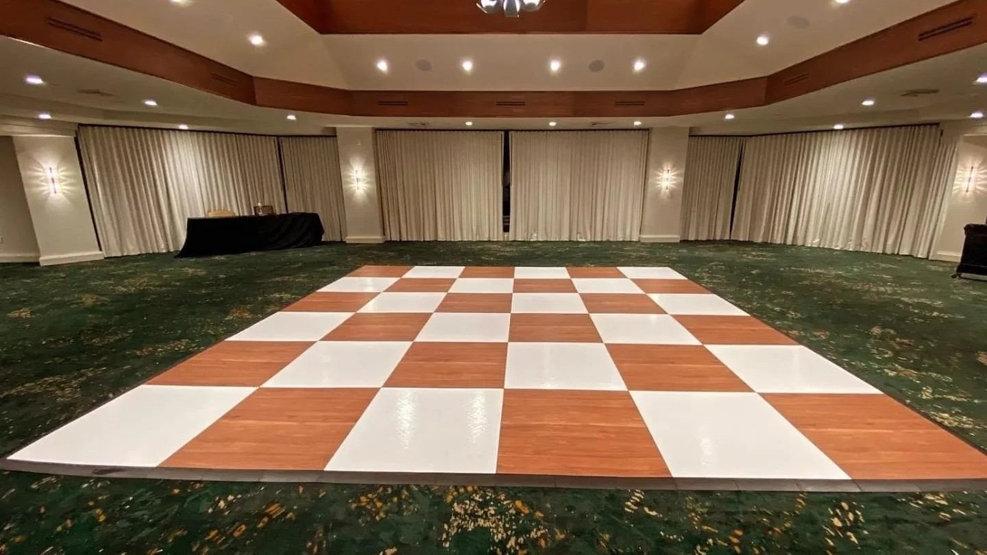 Elevate your event's ambiance with the warm, inviting elegance of our honey and white checkered dance floor. Designed to be a luminous centerpiece, this floor offers more than function—it creates an atmosphere.